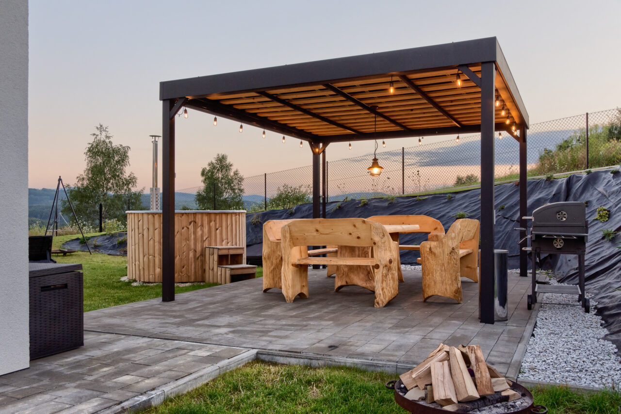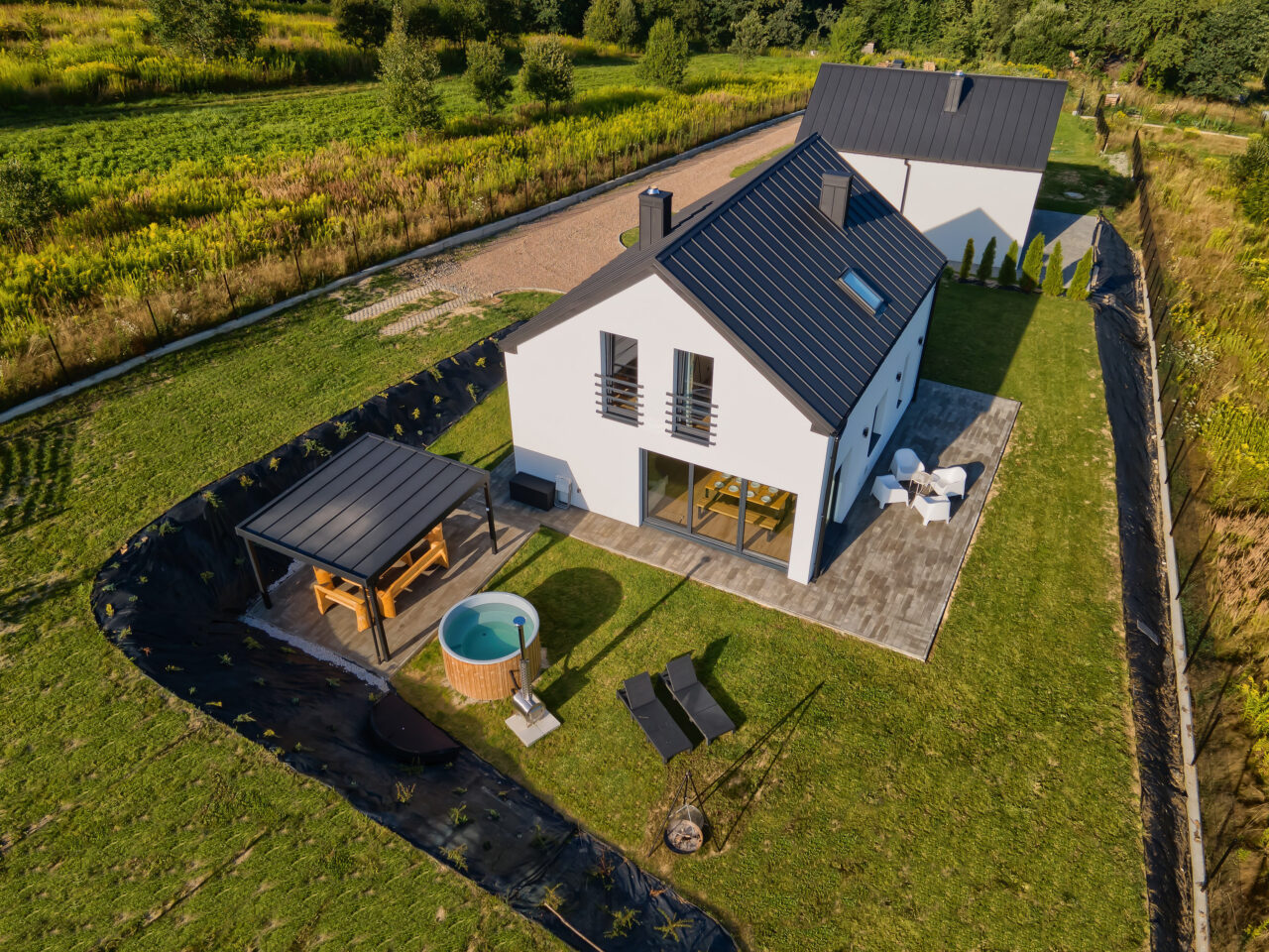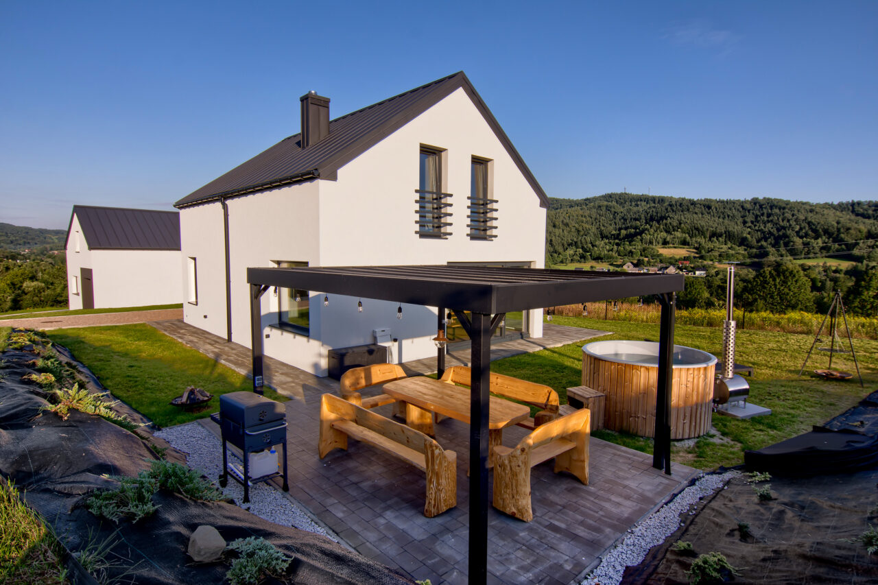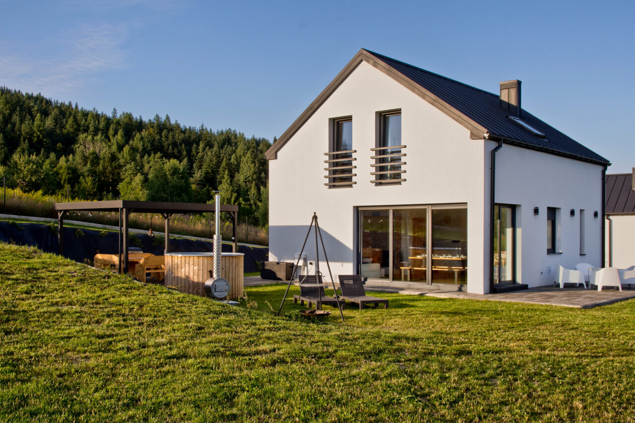 Na parterze znajduje się przestronny salon z pięknym widokiem na góry (szczególnie wyjątkowo wyglądają tutaj zachody słońca ). W salonie znajduje się wypoczynek z funkcją spania dla dodatkowych osób, TV (Netfilix). Na parterze znajduje się także w pełni wyposażona kuchnia, łazienka oraz sypialnia 3 osobowa. Z salonu można wyjść prosto do ogrodu, gdzie czeka na Gości strefa relaksu. Altaną z grillem, Balia ogrodowa, Leżaki, miejsce na ognisko z rusztem.
