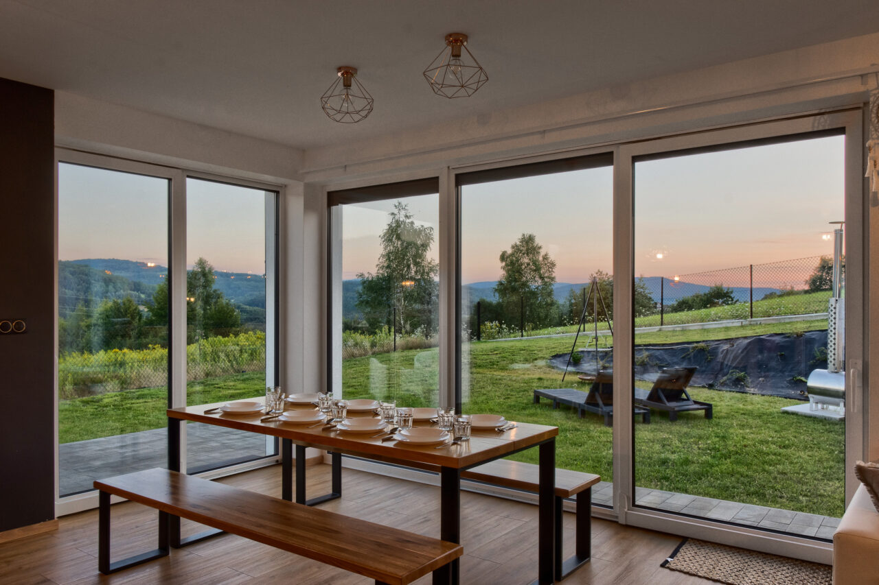 Jadalnia ( stół, krzesła, panoramiczne okna )